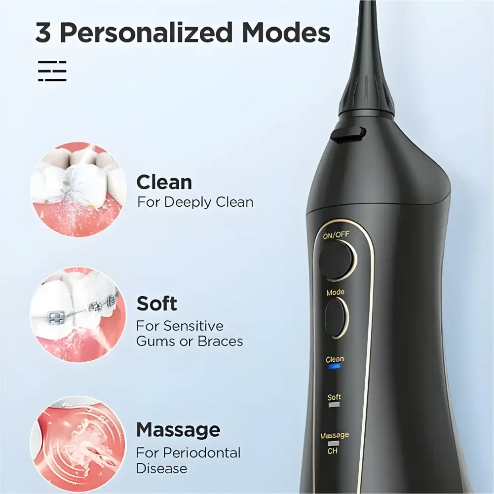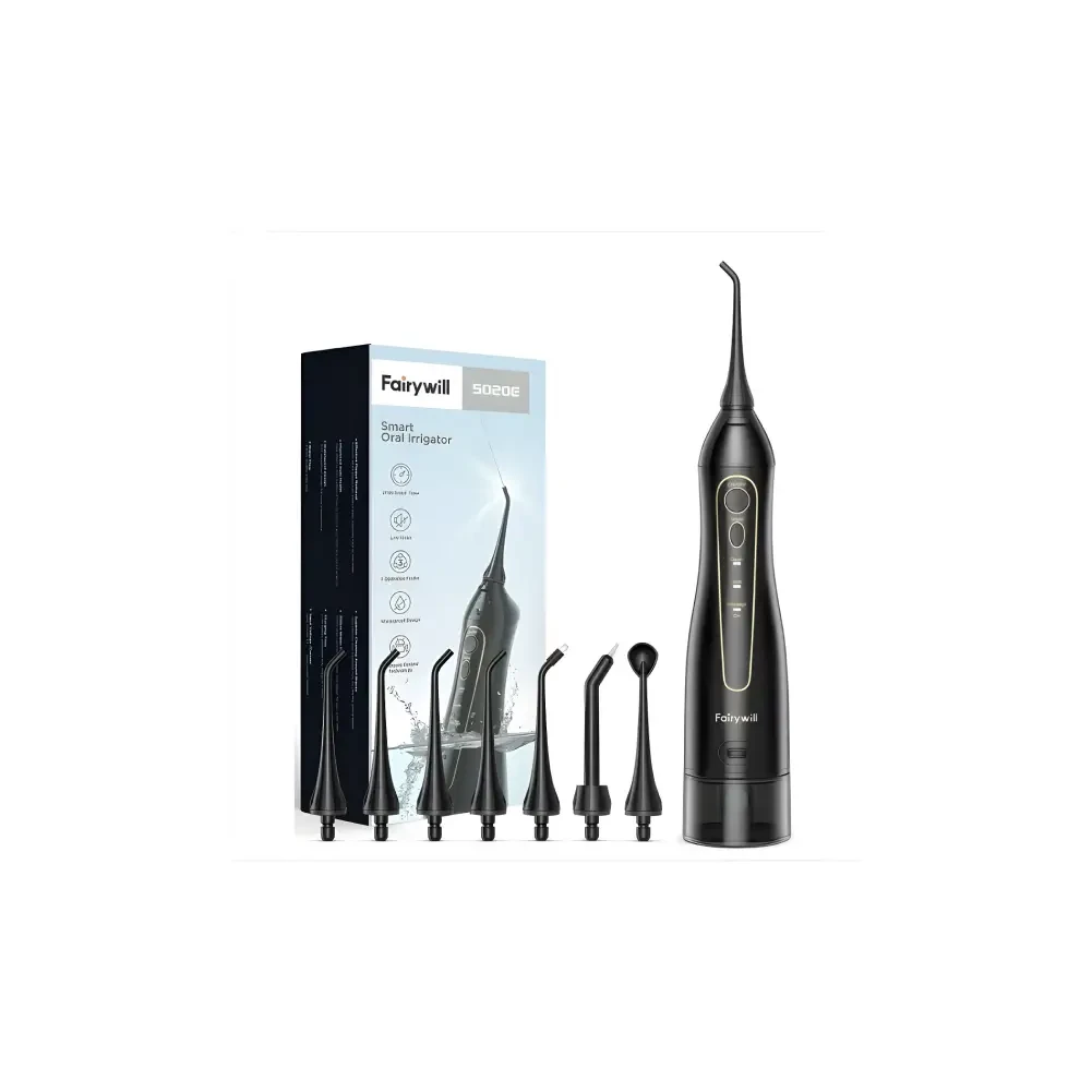 The Fairywill Flosser is a powerful, portable water flosser designed for superior oral care. Its compact and ergonomic design makes it easy to use, whether at home or on the go. Equipped with advanced water pressure settings, it effectively removes plaque, debris, and food particles for cleaner, healthier teeth and gums.