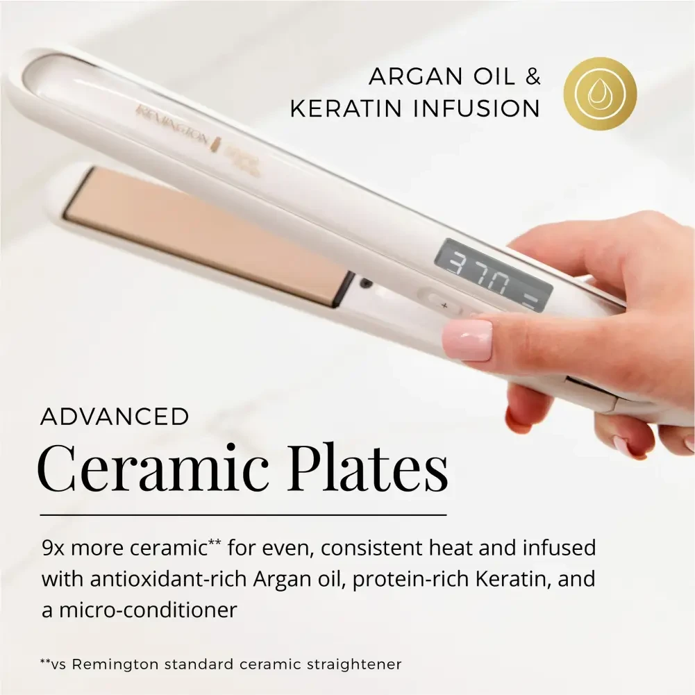 Achieve sleek, smooth hair with the Remington Straightener. Featuring advanced ceramic technology, this straightener delivers even heat distribution for long-lasting results without damage. The 1-inch plates glide effortlessly through your hair, providing a frizz-free finish. With 30 heat settings up to 410°F, you can easily customize your styling for all hair types. Fast heat-up time ensures you’re ready to go in seconds, while the automatic shut-off feature adds safety for peace of mind.