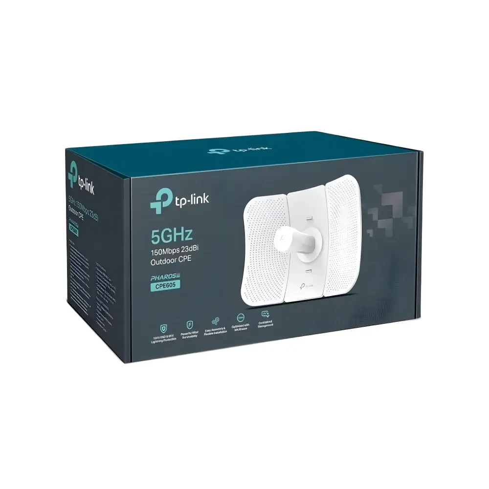 The TP-Link CPE605 is a high-performance outdoor CPE (Customer Premises Equipment) designed for point-to-point or point-to-multipoint wireless connections in challenging outdoor environments. Ideal for providing wireless internet access across large distances, the CPE605 is equipped with a powerful 2x2 MIMO antenna, providing a stable and long-range wireless signal. Whether you're setting up a remote office, extending network coverage, or creating a wireless bridge, the CPE605 offers a robust and reliable solution.